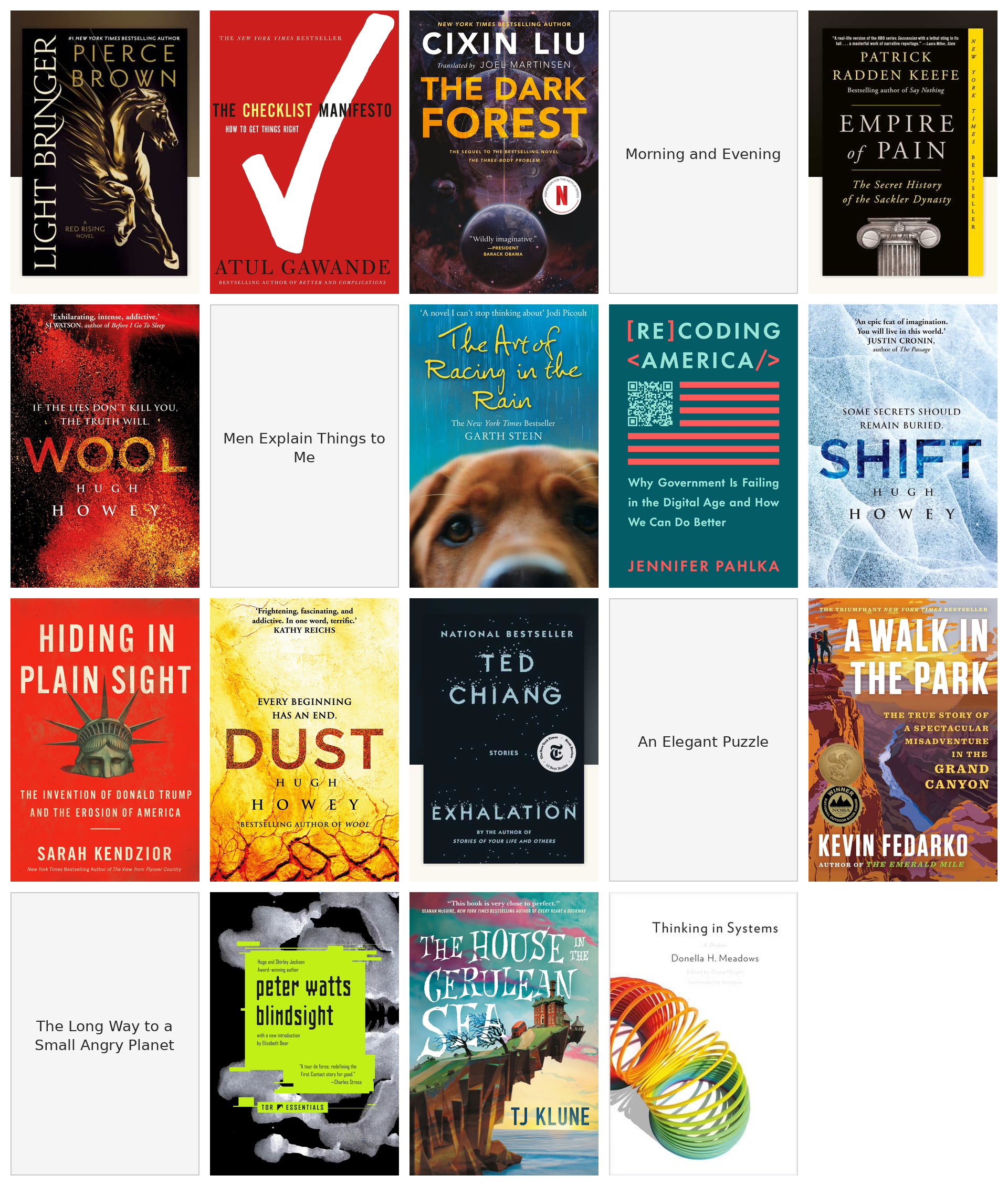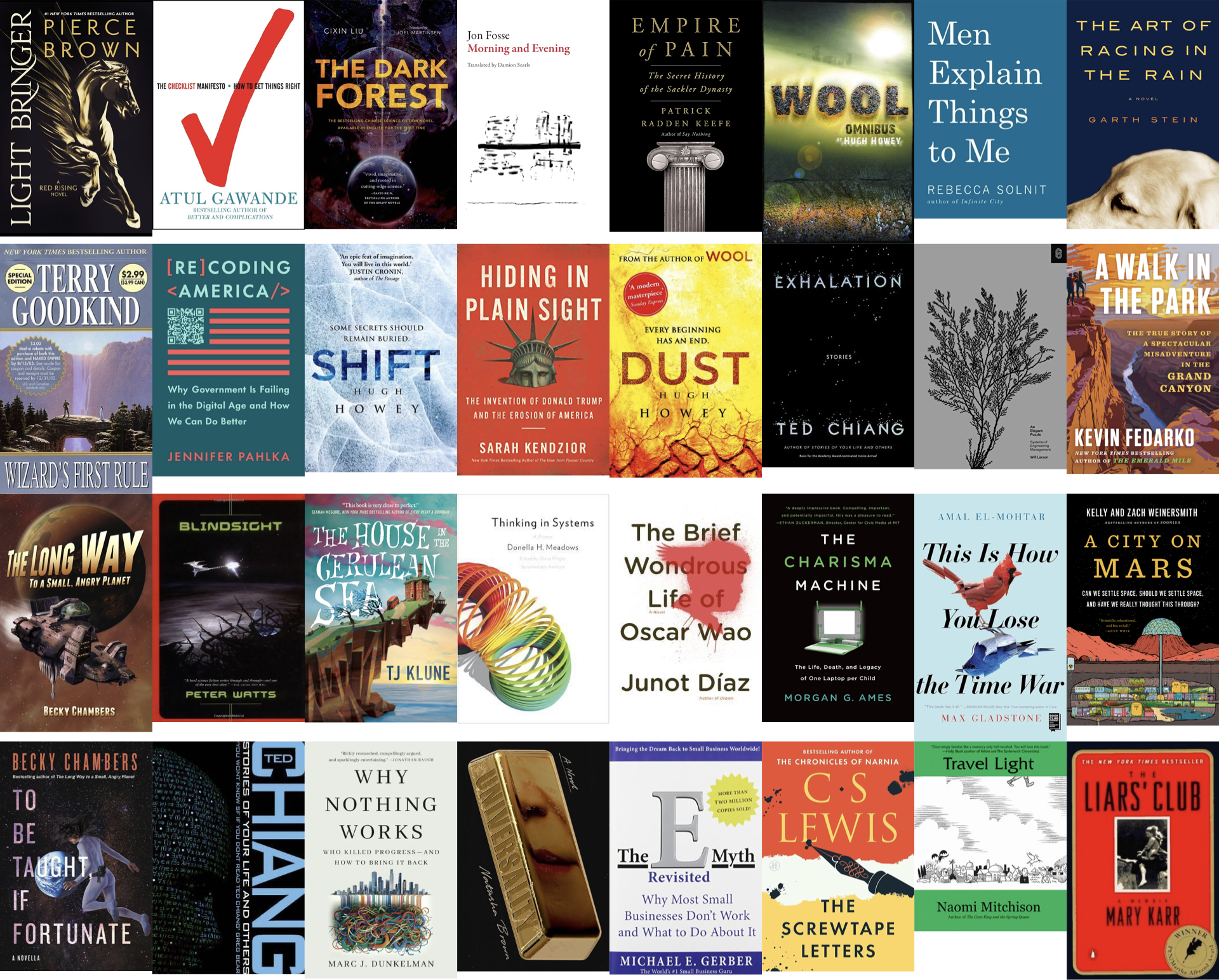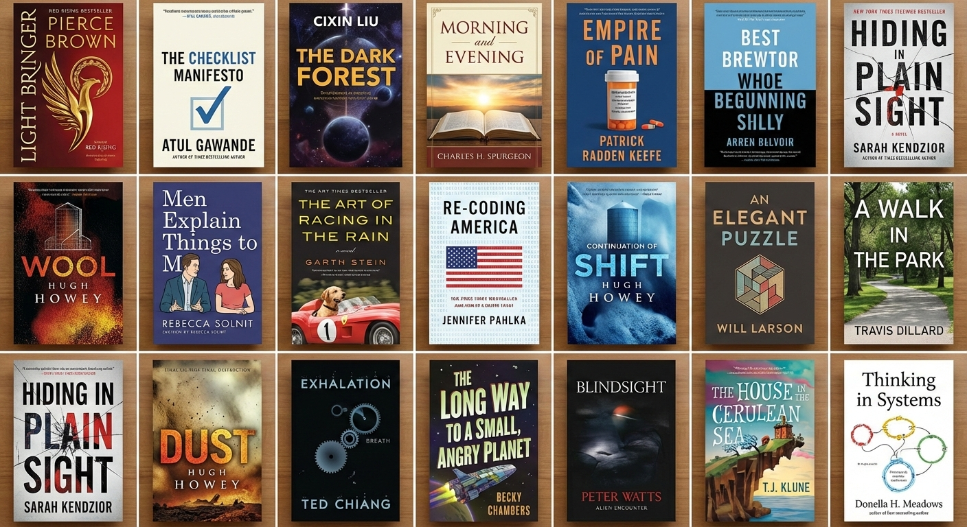 As an amusing aside, towards the end of 2025 I thought creating this image of book covers seemed like an ideal task for an AI agent. Take this list of books from my text file, go fetch cover images, and assemble a composite of all the covers together. Here's the exact prompt I fed to both Google Gemini and ChatGPT: Retrieve cover images for the following list of books and compose them into a grid in a single composite image. ChatGPT thought for over 25 minutes (!) and produced this image of covers and Google Gemini responded almost instantaneously with this image of covers. I ran this experiment before I had finished all the books of 2025, but it is both amazing that I can task a computer to do this sort of work with simple natural language and utterly baffling to see the ways in which these systems fail (I did not read Best Brewtor Whoe Begunning Shlly by the famous Arren Belvoir). ↩